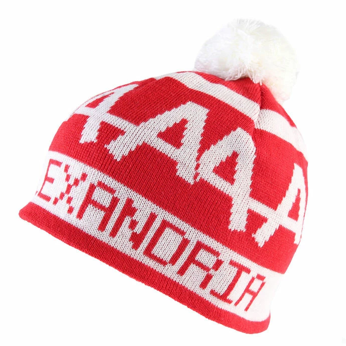 slightly elastic stocking cap brand PLASTIC HEAD. Composition: 100% acrylic. Height without bobble approx .: 21 cm. For head circumference of about 53 cm to 59 cm. Color: Red, White.