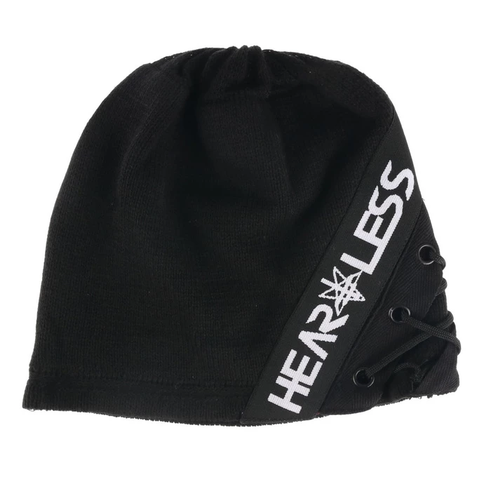 Stylish slightly elastic knitted beanie, by HEARTLESS. Composition: 100% polyacrylic. Height approx .: 21cm. For approx. head circ. 50cm to 58 cm. Color: black