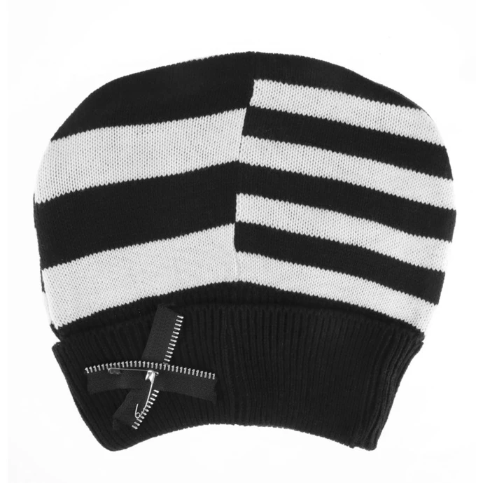 Stylish slightly elastic knitted beanie, by HEARTLESS. Composition: 100% polyacrylic. Height approx .: 22cm. For approx. head circ.: 51cm to 61cm. Color: black, white.