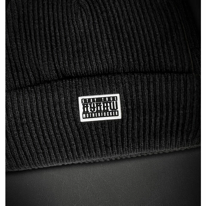 Stylish, knitted and slightly elastic beanie HYRAW with an embroidery.