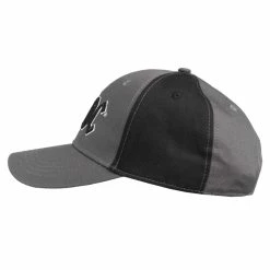 Cap with embroidery. At the rear part cap has an adjustable buckle – universal size. The peak is slightly curved. Composition: 100% cotton. Color: dark grey, black.