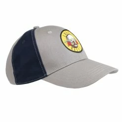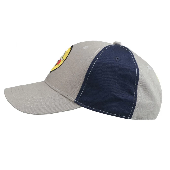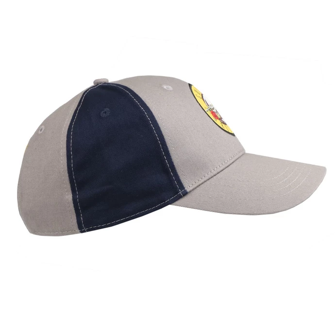 Cap with embroidery. At the rear part cap has an adjustable buckle – universal size. The peak is slightly curved. Composition: 100% cotton. Color: gray, dark blue.