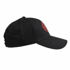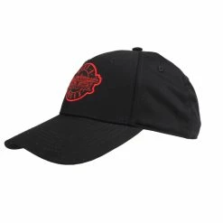 Cap with embroidery. The cap is equipped with an adjustable velcro at the back – for a universal head size. The peak is slightly curved. Composition: 100% cotton. Color: black.