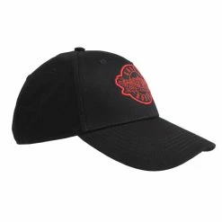 Cap with embroidery. The cap is equipped with an adjustable velcro at the back – for a universal head size. The peak is slightly curved. Composition: 100% cotton. Color: black.